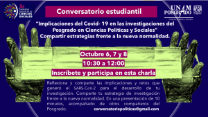 Conversatorio «Implicaciones del COVID- 19 en las investigaciones del Posgrado en Ciencias Políticas y Sociales. Estrategias frente a la nueva normalidad», 10:30 am a 12:00 pm
