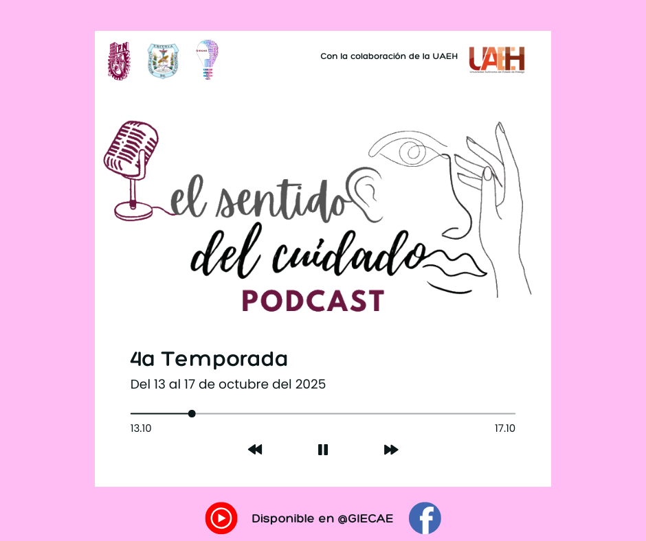 "El Sentido del Cuidado" es un podcast que explora el cuidado como un sentido esencial, tanto en su dimensión física como emocional. Esta temporada es posible gracias a la colaboración entre el Grupo de Investigación en Economía del Cuidado y Autonomía Económica (GIECAE) y el Cuerpo Académico de Estudios en Trabajo Social del Instituto de Ciencias Sociales y Humanidades de la Universidad Autónoma del Estado de Hidalgo.