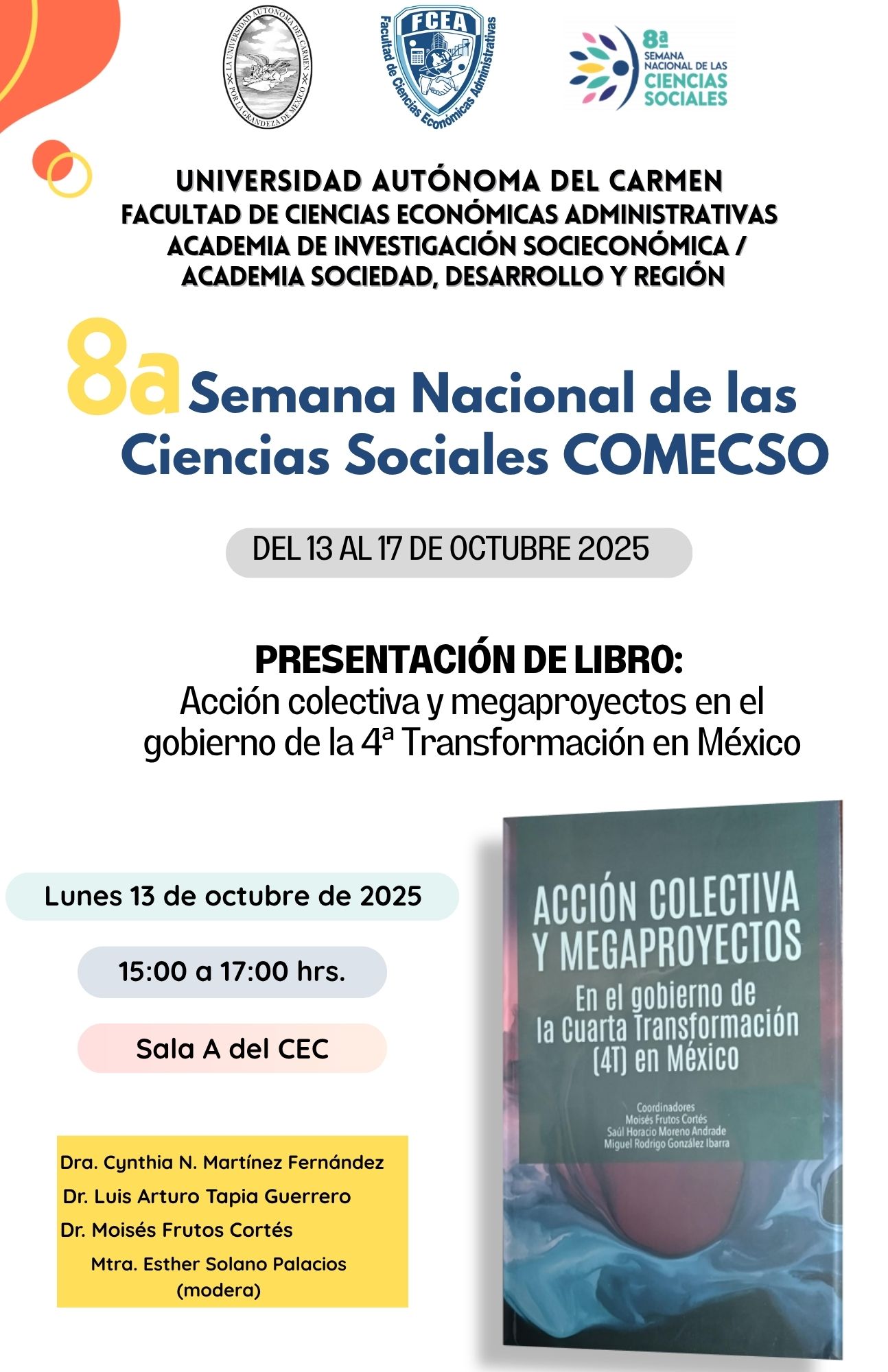 El libro "Acción colectiva y megaproyectos de la 4T en México", recopila reflexiones de un grupo multidisciplinario de académicos, ofreciendo un análisis sobre los conflictos en torno a los megaproyectos impulsados durante el sexenio de Andrés Manuel López Obrador (2018-2024). A tres años de realizado el foro regional que generó estas reflexiones, resulta pertinente conocer la mirada de otros expertos sobre la pertinencia y utilidad de estas obras de infraestructura en el sureste mexicano.