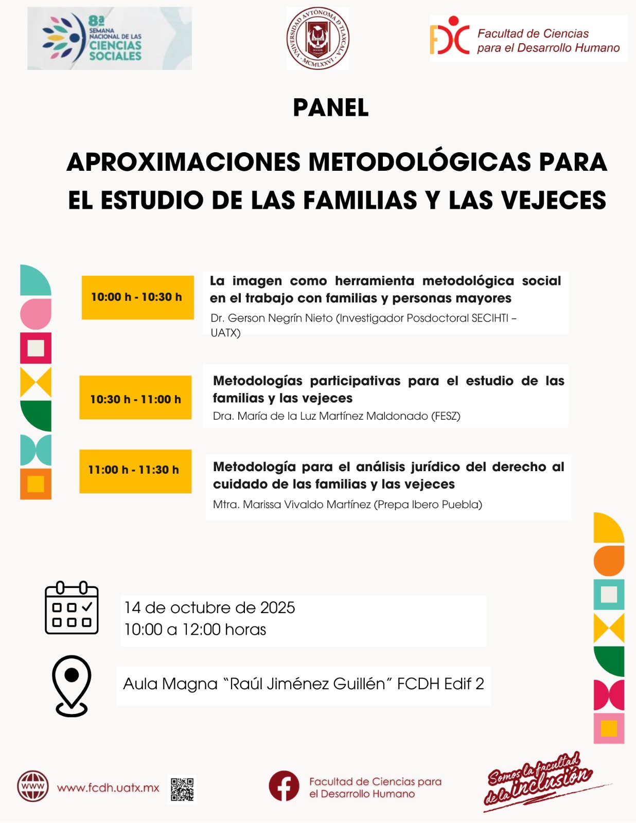 El estudio de los fenómenos de las familias y la vejez requieren de abordajes no solo interdisciplinarios, sino también, de perspectivas metodológicas que permitan un análisis situado, crítico y reflexivo, a fin de comprender su diversidad, significados, relaciones y la interdependencia con procesos sociales que orientan las situaciones y vivencias. En tanto, los profesionales en la atención de las familias y las vejeces, deben tener elementos metodológicos que les permitan conocer, contextualizar y trabajar de manera horizontal con las personas, además de tener una herramienta metodológica para el análisis de programa sociales que se dirigen a las familias y las vejeces con el objetivo de