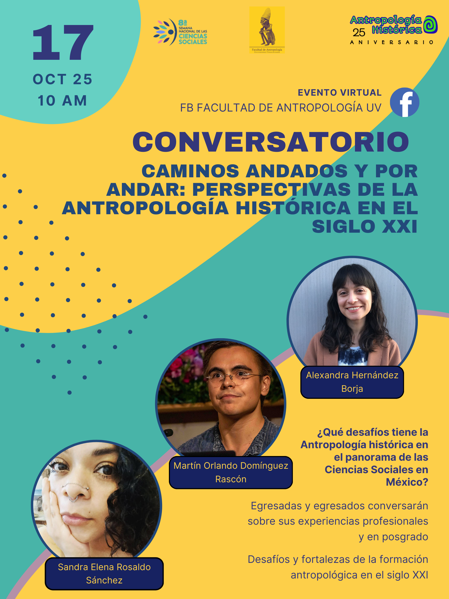 Dialogar en torno a la formación y ejercicio de la Antropología histórica, frente al panorama de la Antropología mexicana y las Ciencias Sociales en general durante los primeros 25 años del siglo XXI. Para ello se parte de las experiencias de egresadas y egresado de diferentes generaciones de la licenciatura en Antropología Histórica ofertada por la Universidad Veracruzana. De esa forma, se podrán recuperar algunos elementos generales de la Antropología y las Ciencias Sociales en México, en cuanto a experiencias laborales y académicas, en relación con las trayectorias de egresados en los primeros años del siglo XXI
