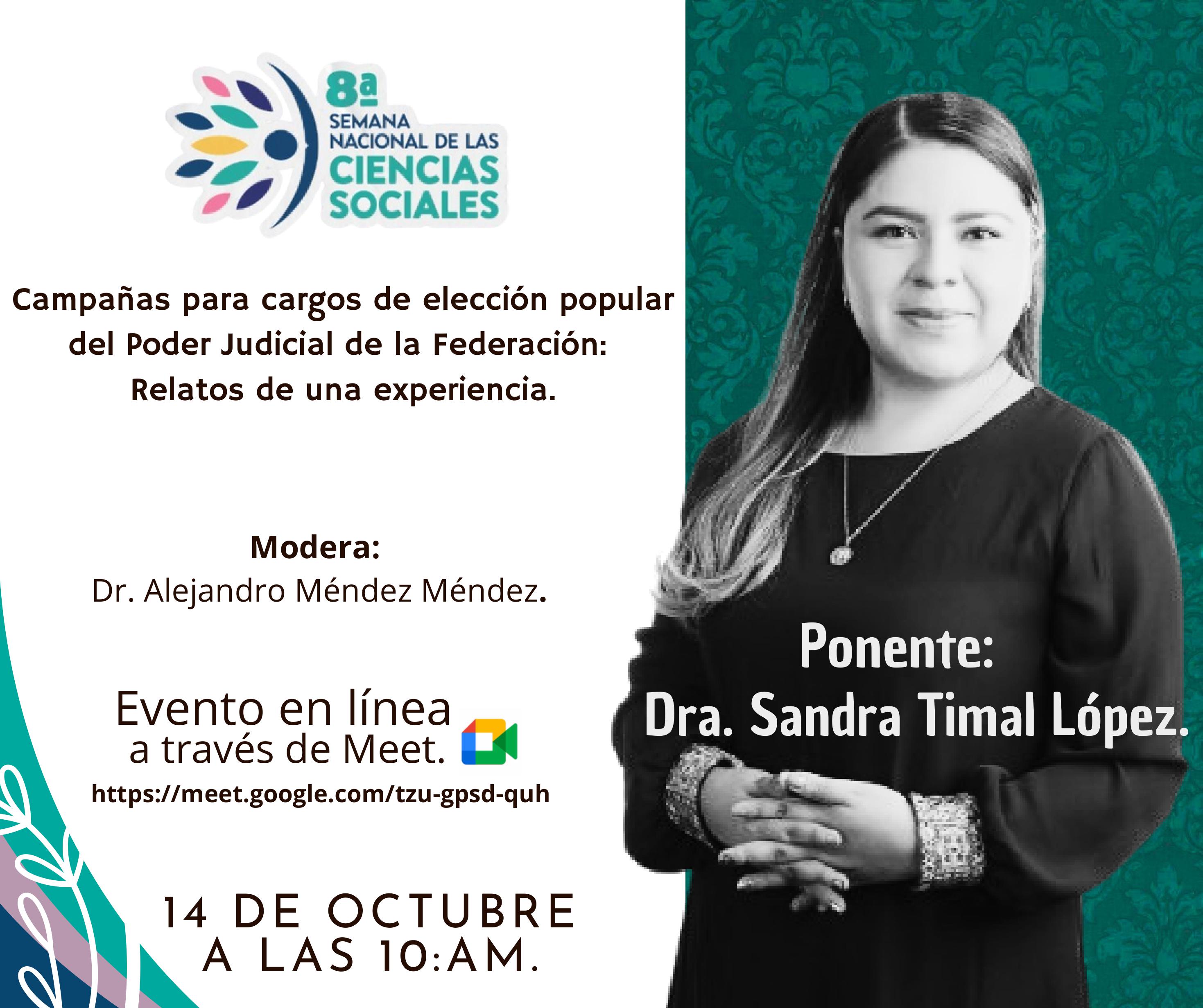 Campañas para cargos de elección popular del Poder Judicial de la Federación: relatos de una experiencia Este evento tiene el objetivo de que las personas que lo escuchen tengan la posibilidad de conocer lo que se tiene permitido y también lo prohibido en el desarrollo de campañas electorales para una persona candidata a un cargo de elección del Poder Judicial. Identificarán las plataformas más representativas del proceso, "Conóceles", y "MEFIC", ambas de suma relevancia en el trabajo previo, durante y posterior a las votaciones.