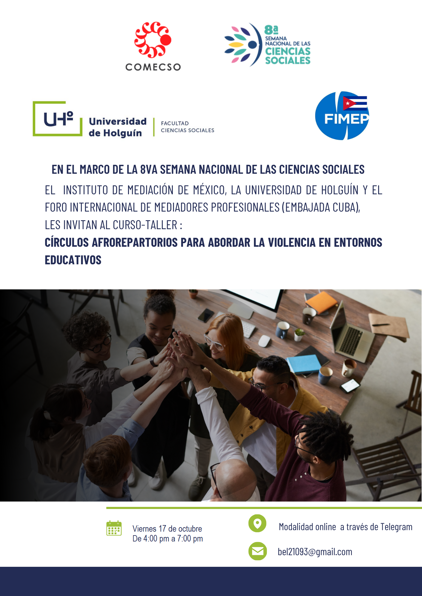 Círculos afroreparatorios para abordar la violencia en entornos educativos es una propuesta formativa gamificada utilizando un juego interactivo vía Telegram, que busca promover el conocimiento y la reflexión sobre las desigualdades raciales y de género que se reproducen en los sistemas educativos y la importancia de las prácticas restaurativas culturalmente situadas que promuevan la interculturalidad y transformen las condiciones estructurales que limitan el acceso equitativo a las personas en las comunidades educativas. Curso-taller sin costo.