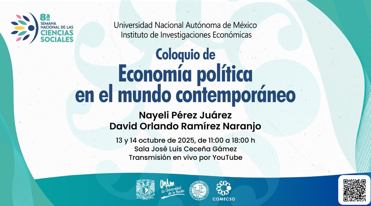 Sala José Luis Ceceña Gámez del Instituto de Investigaciones Económicas (IIEc-UNAM), Circuito Mario de la Cueva s/n, Ciudad de la Investigación en Humanidades, C.U., 04510 Ciudad de México, CDMX.