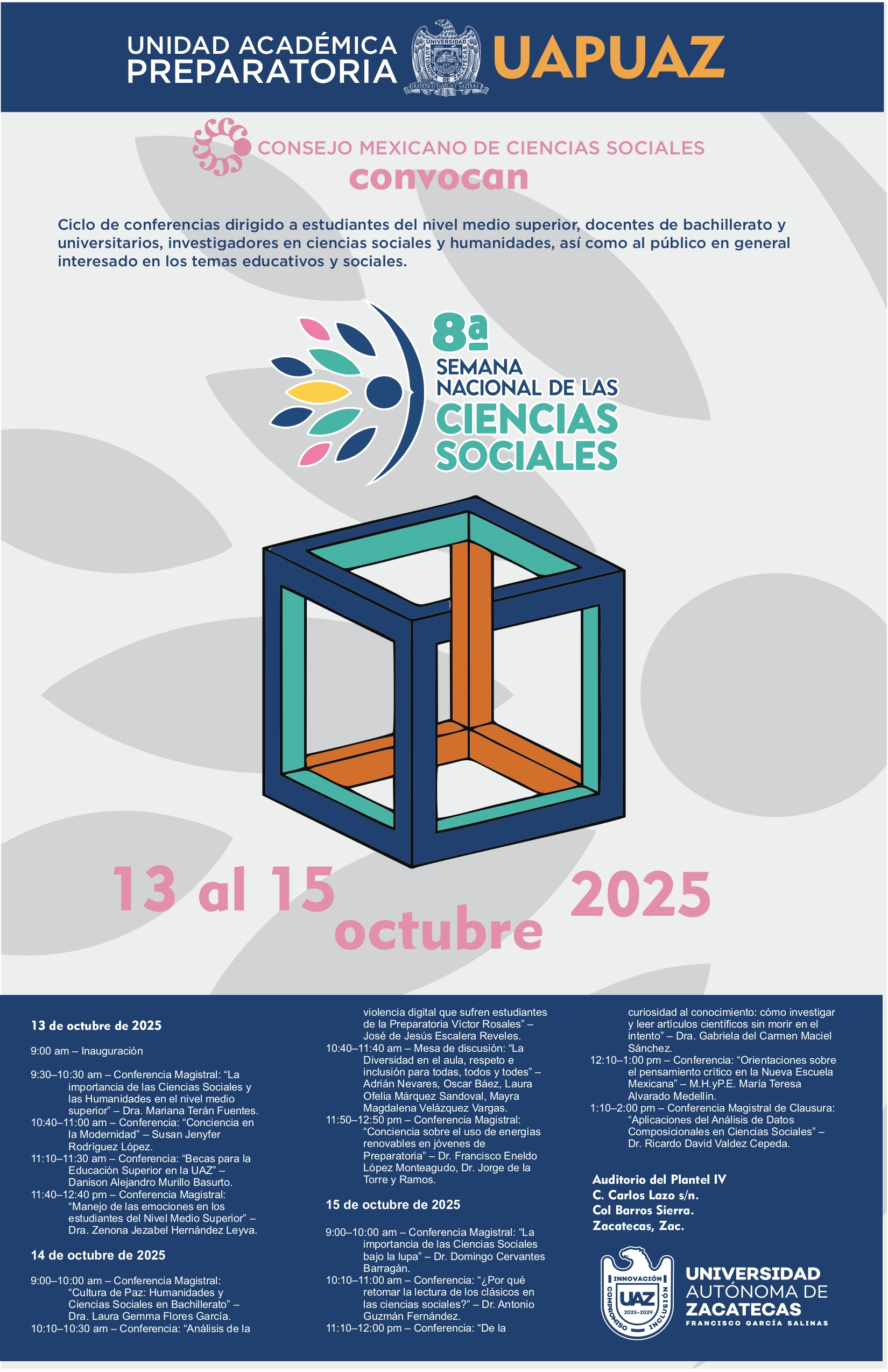 La organización de la semana de ciencias sociales en la preparatoria de la UAZ, permite contar con espacio de análisis para la impartición de las ciencias sociales en el aula.