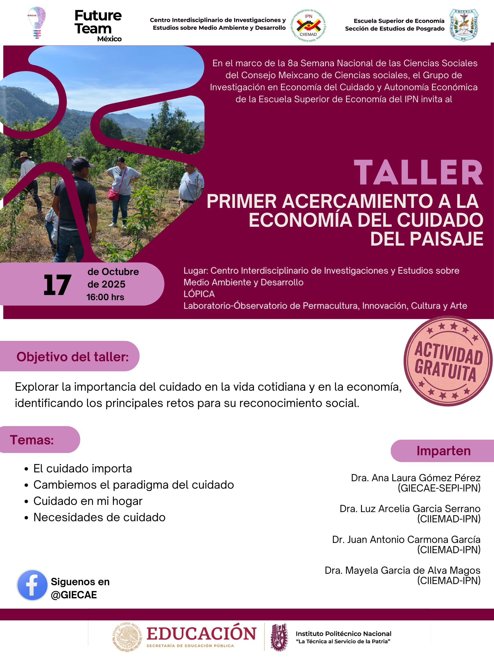 El taller “Primer acercamiento a la economía del cuidado del paisaje” explora cómo la falta de mercados y precios dificulta valorar y gestionar el entorno, generando incertidumbre, conflictos intergeneracionales y degradación social y ambiental. Se analizarán los impactos de la mala gestión de recursos como suelo, agua, subsuelo y aire, así como la pérdida de identidad comunitaria. A través de ejemplos concretos —como el efecto invernadero, los riesgos en zonas marginadas y la limitada agricultura orgánica— se reflexionará sobre las condiciones en que estas problemáticas se desarrollan y sus efectos a corto, mediano y largo plazo. Gratuito.