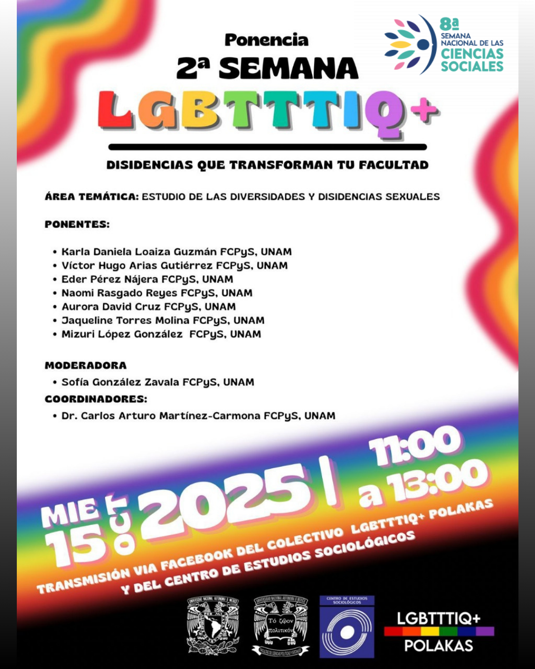 Disidencias que transforman la universidad. 2da Semana LGBTTTIQ+ de la FCPyS