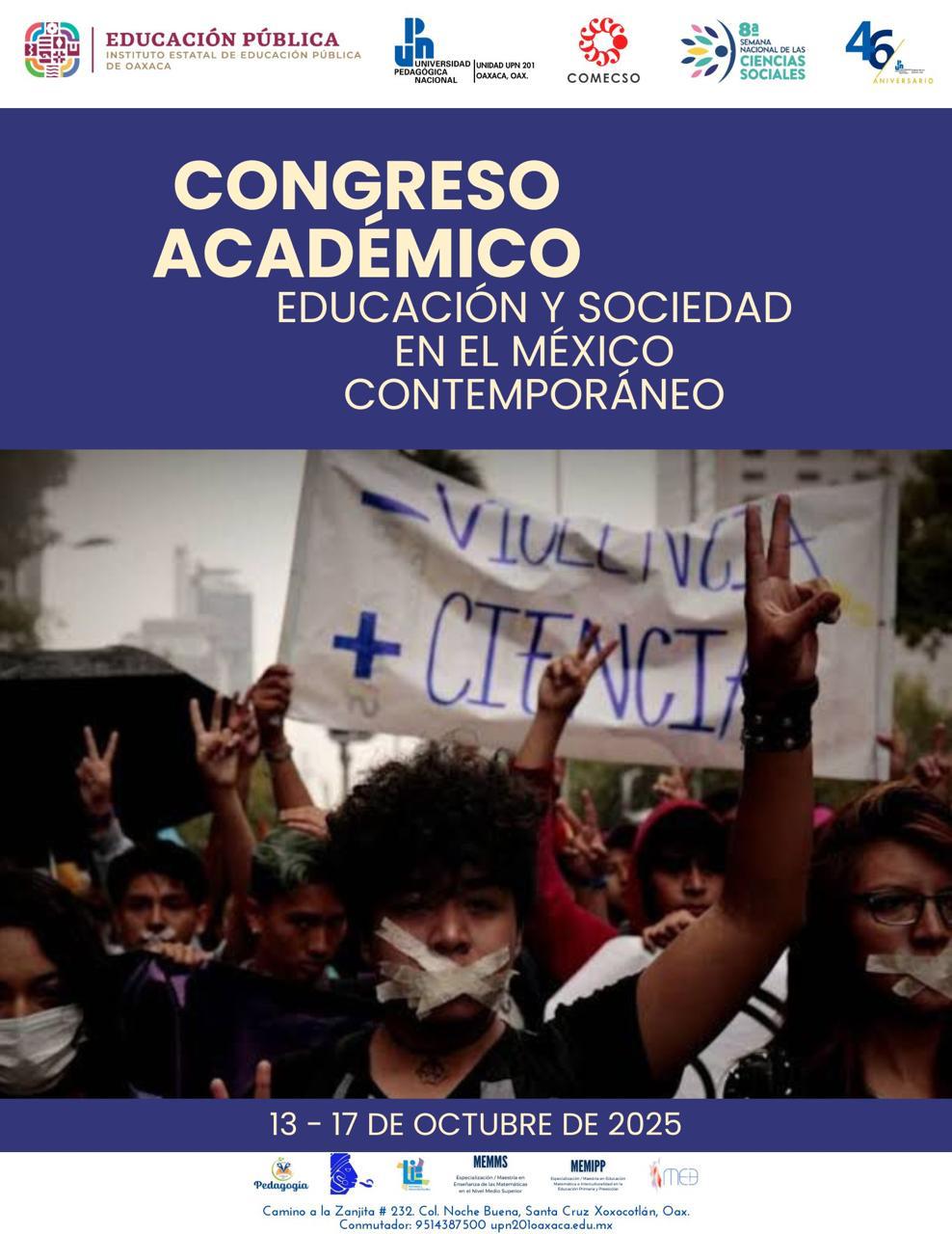 Congreso académico: “Educación y sociedad en el México Contemporáneo”. En el marco del 46o aniversario de la UPN Unidad 201 Oaxaca y como parte de la 8a semana nacional de ciencias sociales convocada por el Consejo Mexicano de Ciencias Sociales (COMECSO)