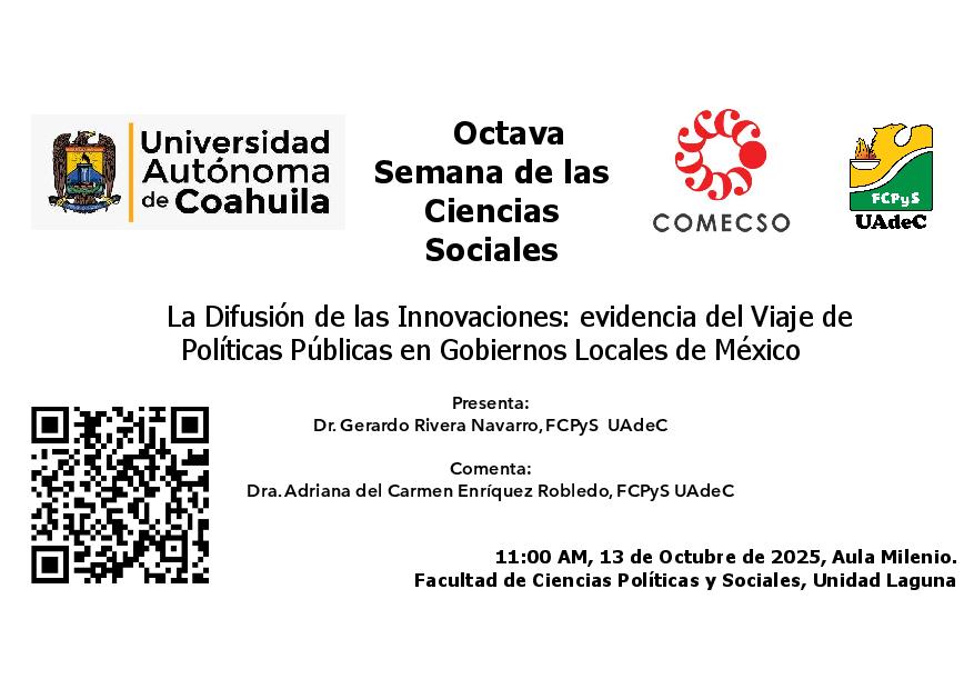 La frase que reza "No hay nada nuevo bajo el sol" encuentra un sustento teórico-metodológico en la escuela de pensamiento Difusión de las Innovaciones iniciada por el profesor Everett Rogers. En esta conferencia hablaremos sobre evidencias de adopción de políticas públicas entre los gobiernos municipales de México.