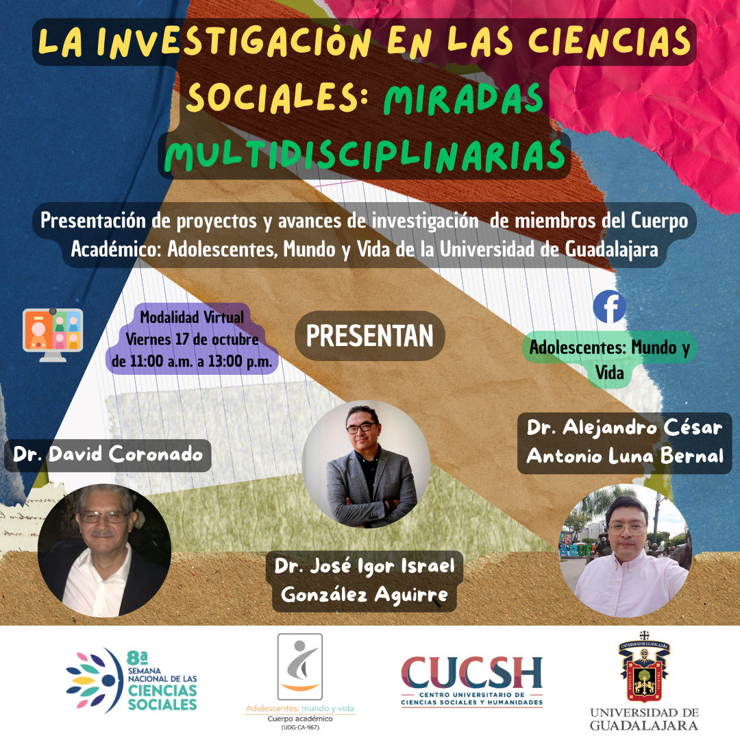 En este evento se hará la presentación de proyectos y avances de investigación de miembros del Cuerpo Académico: Adolescentes, Mundo y Vida de la Universidad de Guadalajara.