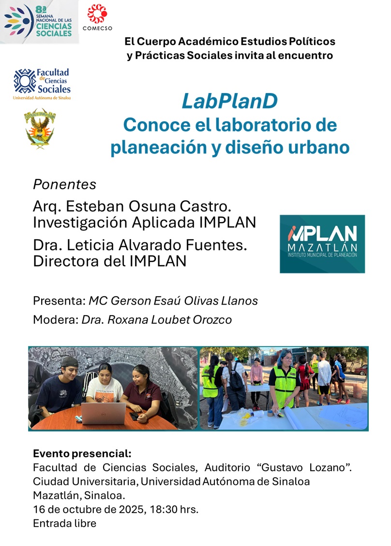DIálogo con integrantes del Instituto de Planeación de Mazatlán (IMPLAN) con el fin de compartir los proyectos de la ciudad y las posibilidades de desarrollo profesional en el área de los estudios sociales de desarrollo urbano.