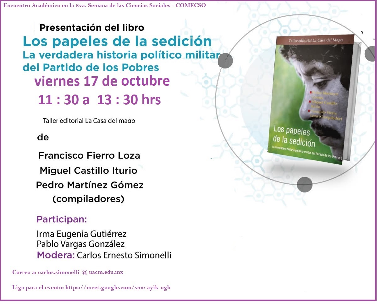 La Dra. Irma Eugenia Gutiérrez Mejía fue Directora de Salud Pública del Gobierno del Distrito Federal (2000-2006); Coordinadora de Prestaciones Sociales del Instituto Mexicano del Seguro Social IMSS, México. Publicó "Los Caminantes de la Tierra Ocupada. Emigración campesina de la huasteca hidalguense de las minas a Pachuca, 1992," y es actualmente Fundación Arturo Herrera Cabañas AC; Pablo Vargas profesor e investigador por la UACM y actualmente director de El Colegio del Estado de Hidalgo. Ambos nos invitan a recorrer este libro basado en testimonios directos de personas que participaron en la experiencia guerrillera y en el origen de la formación del Partido de los Pobres en Guerrero