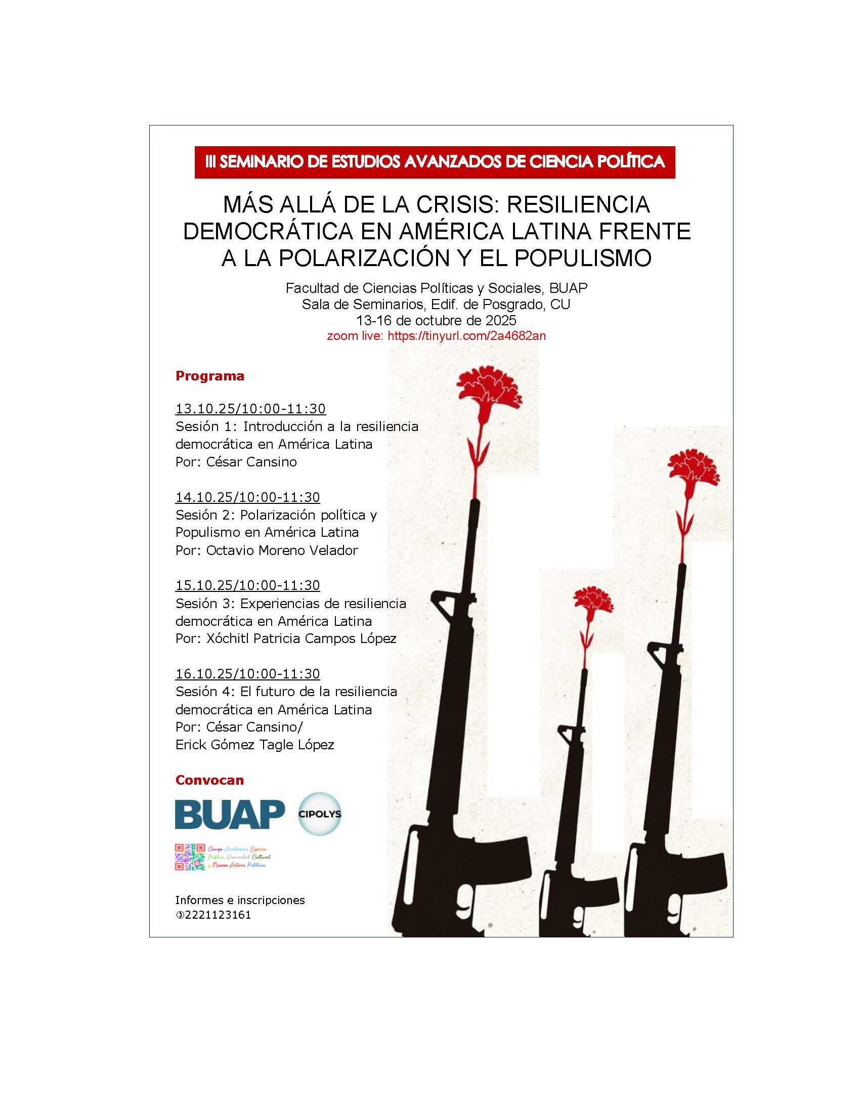 A través de un análisis crítico, se explorarán en este Seminario las dinámicas sociales, políticas y culturales que contribuyen a la fortaleza democrática en América Latina.