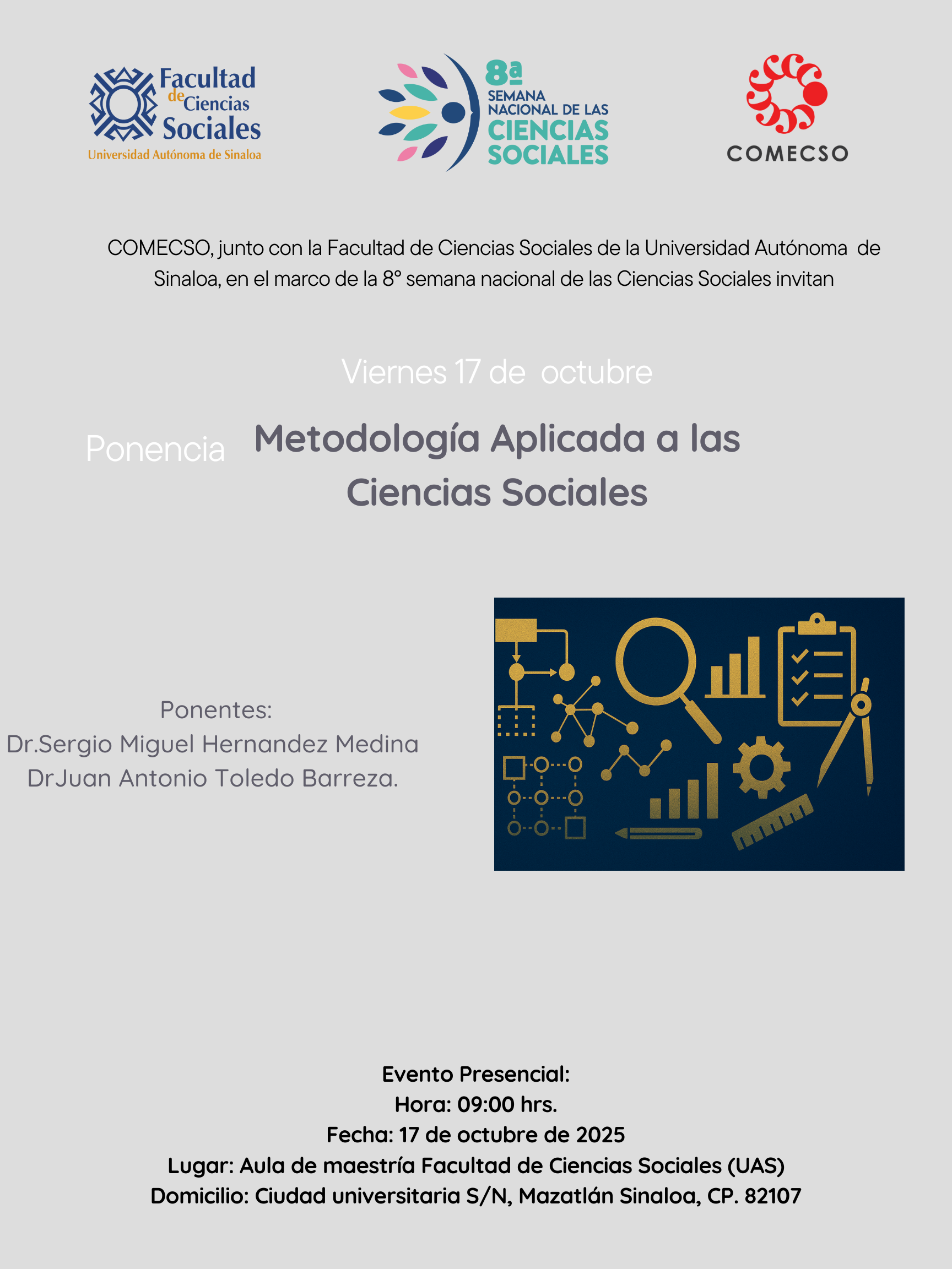 es una plática dirigida a estudiantes que mostrará cómo los métodos de investigación permiten analizar fenómenos sociales de manera crítica y práctica, ofreciendo herramientas para desarrollar proyectos académicos sólidos y con impacto.