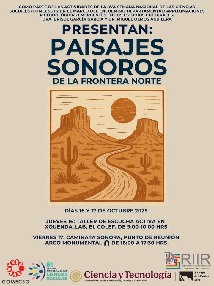 El Encuentro de Paisaje Sonoro de la Frontera Norte será un espacio de diálogo e intercambio en el que investigadores, artistas, músicos, estudiantes y comunidades fronterizas compartirán reflexiones y experiencias en torno a los sonidos característicos de esta región. A lo largo de las jornadas se desarrollarán conferencias, talleres y presentaciones artísticas que explorarán la riqueza acústica de la frontera, desde los ruidos urbanos y el tránsito cotidiano, hasta las expresiones culturales, rituales comunitarios y paisajes naturales.