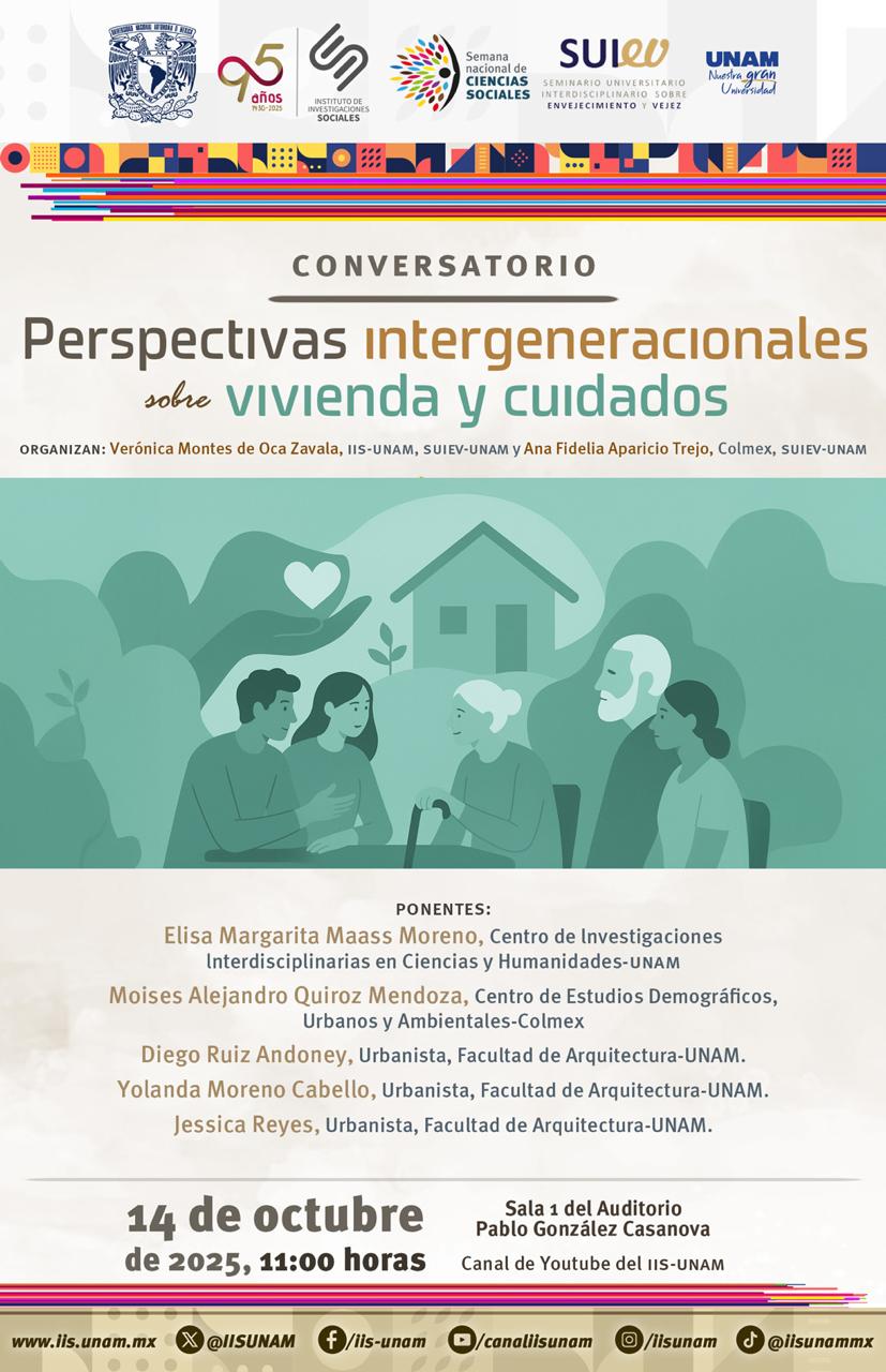 Se explorarán los desafíos de distintas generaciones para acceder a viviendas que favorezcan los cuidados, subrayando la pertinencia de transitar a modelos colectivos y cooperativos en un contexto de cambio demográfico. Se dialogará en torno a cuatro preguntas clave: ¿Qué nos ofrecen las perspectivas del envejecimiento y el cambio demográfico para comprender las necesidades emergentes de vivienda y cuidados? ¿Qué desafíos enfrentan las juventudes para acceder a la vivienda y cómo impacta en sus cuidados y proyectos de vida? ¿Qué ventajas y retos ofrece la vivienda colaborativa para las personas mayores? ¿Cómo el modelo cooperativista fortalece los cuidados comunitarios a lo largo de la vida
