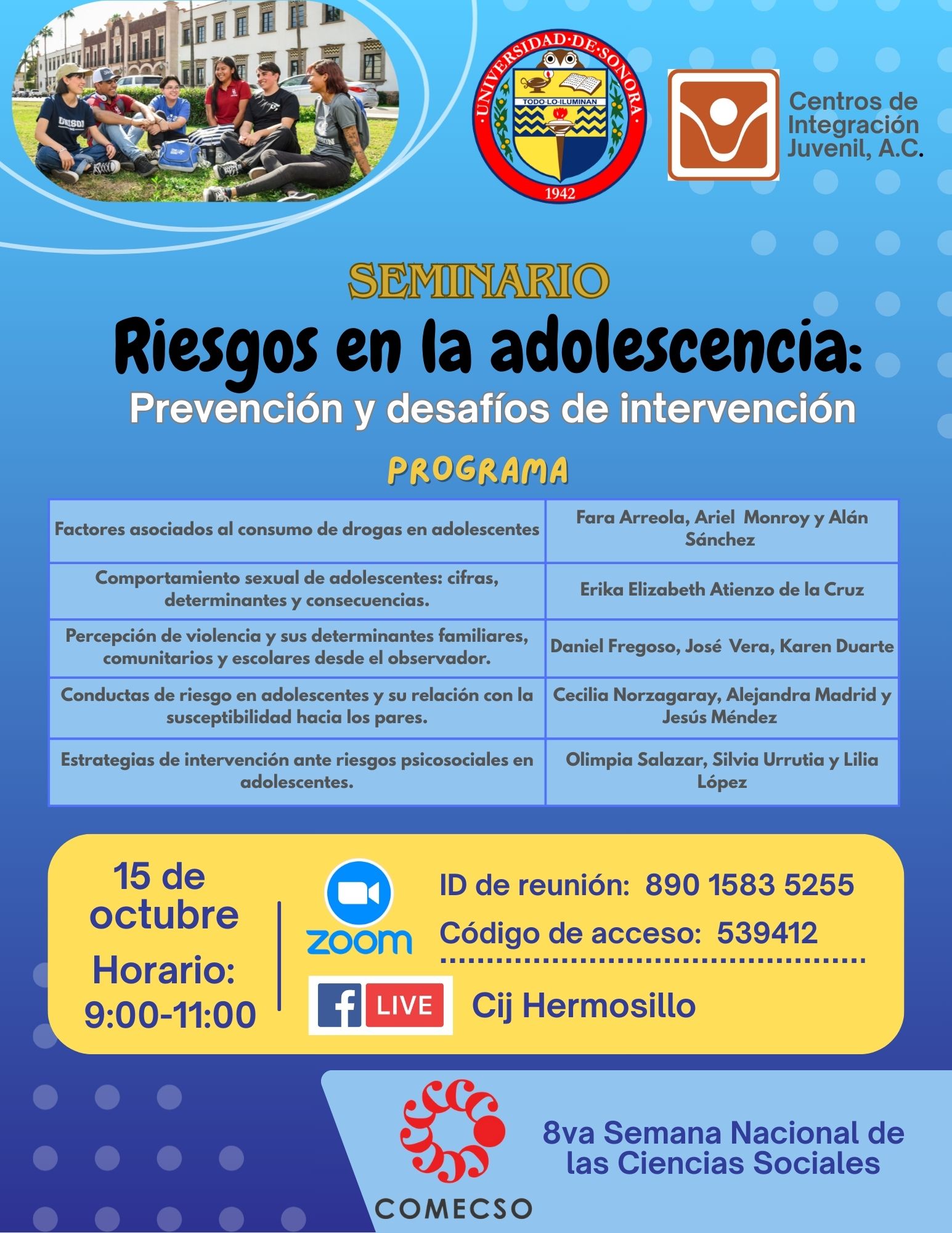 El simposio tiene como objetivo fomentar la colaboración entre instituciones que trabajan con adolescentes para analizar los riesgo y principales problemáticas psicosociales así como las estrategias de intervención más efectivas para su abordaje integral.