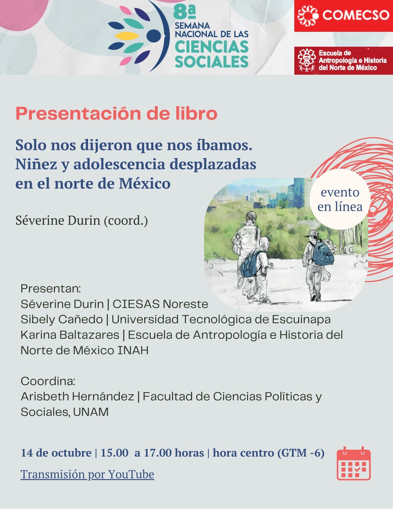 Presentación del libro "Solo nos dijeron que nos íbamos. Niñez y adolescencia desplazadas en el norte de México". Con la presencia de la coordinadora, Séverin Durin y Sibely Cañedo, especialista en desplazamiento forzado ante el riesgo de reclutamiento de adolescentes y jóvenes en el sur de Sinaloa.