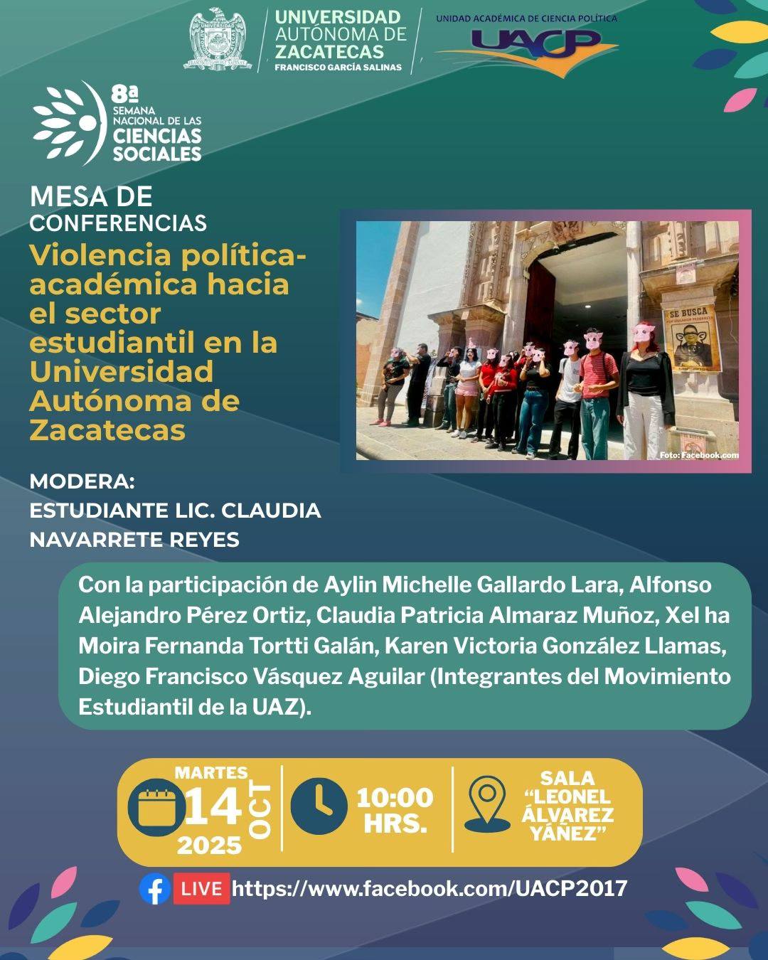Discutir y visibilizar las violencias político-académicas de las que son objeto el sector estudiantil, en especial las represalias experimentadas por haber participado en el reciente Movimiento Estudiantil UAZ.