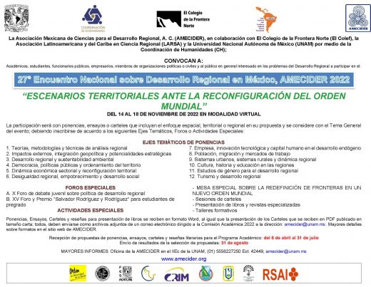 La Asociación Mexicana de Estudios Rurales (AMER), reconociendo las diferencias culturales y las desigualdades sociales que existen en los territorios…