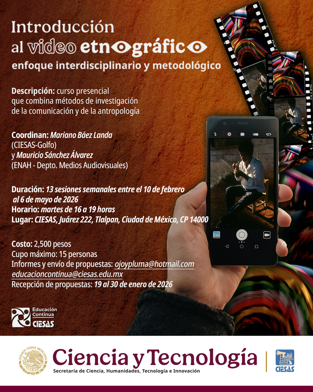 Coordinación y docencia: Mariano Báez Landa (CIESAS-Golfo) y Mauricio Sánchez Álvarez (ENAH-Depto. Medios Audiovisuales)