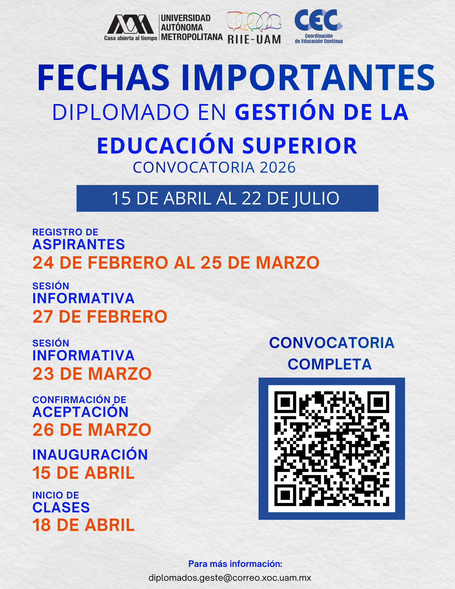 Más información: https://riie.uam.mx/formacion-continua/diplomado-gestion-la-educacion-superior/