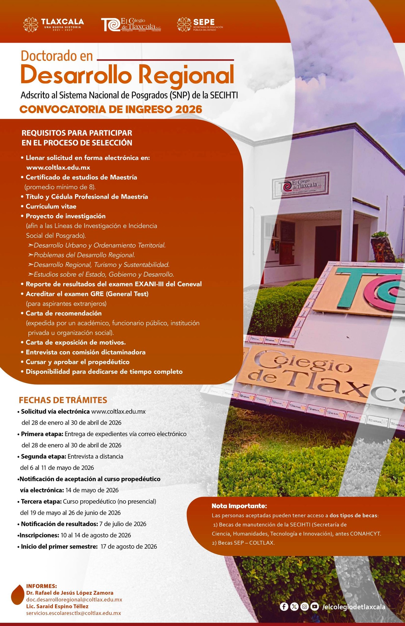 Información sobre el posgrado: https://coltlax.edu.mx/mdr/