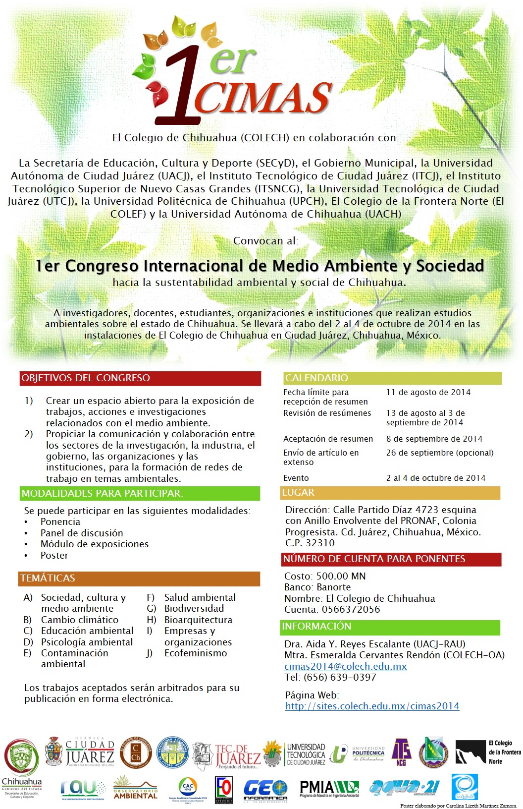 A investigadores, docentes, estudiantes, organizaciones e instituciones que realizan estudios ambientales sobre el estado de Chihuahua. Que se llevará a cabo del 2 al 4 de octubre de 2014 en las instalaciones de El Colegio de Chihuahua en Ciudad Juárez, Chihuahua, México.