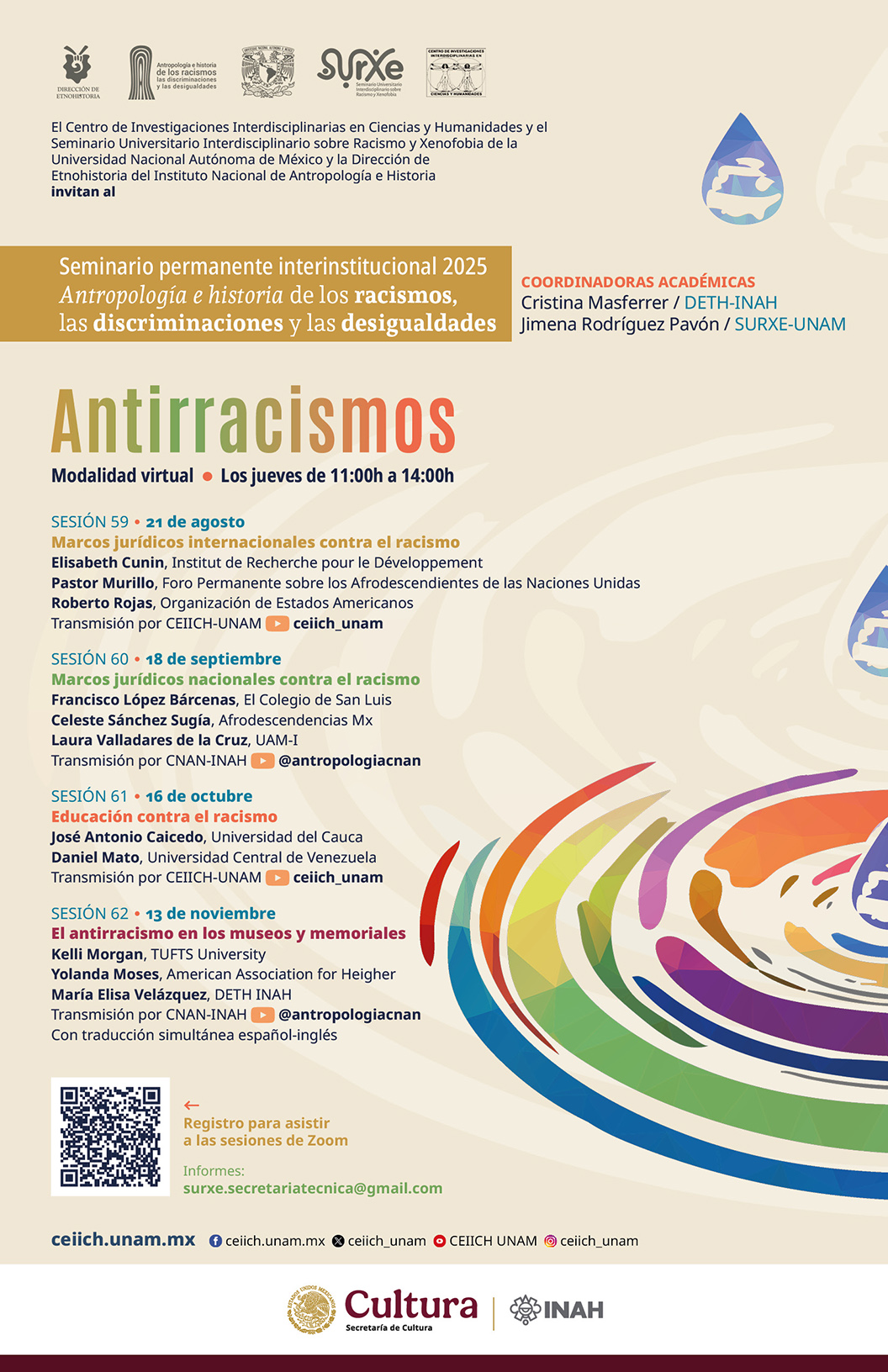 El Centro de Investigaciones Interdisciplinarias en Ciencias y Humanidades y el Seminario Universitario Interdisciplinario sobre Racismo y Xenofobia de la Universidad Nacional Autónoma de México y la Dirección de Etnohistoria del Instituto Nacional de Antropología e Historia invitan al