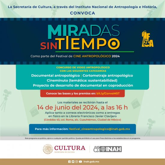 Ya está abierta la convocatoria del concurso de video antropológico “Miradas sin tiempo” Promueve la producción y divulgación de obras audiovisuales que muestren el horizonte cultural de…