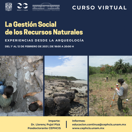 Curso virtual "La Gestión Social de los Recursos Naturales. Experiencias desde la Arqueología" Imparte: Dr. Llorenç Pujol Pizà (Becario posdoctoral, CEPHCIS-UNAM) Del 1° al 12 de febrero de…